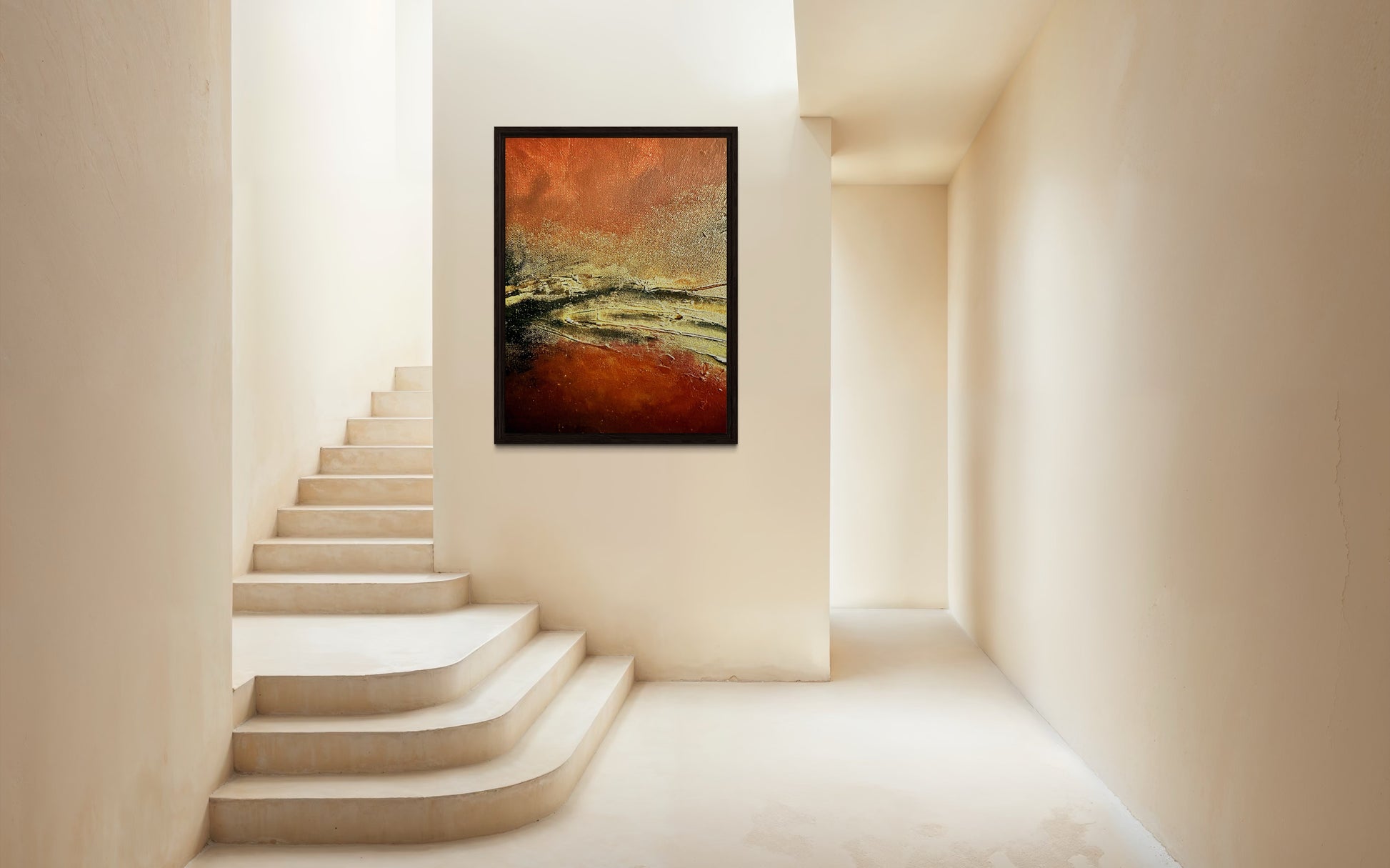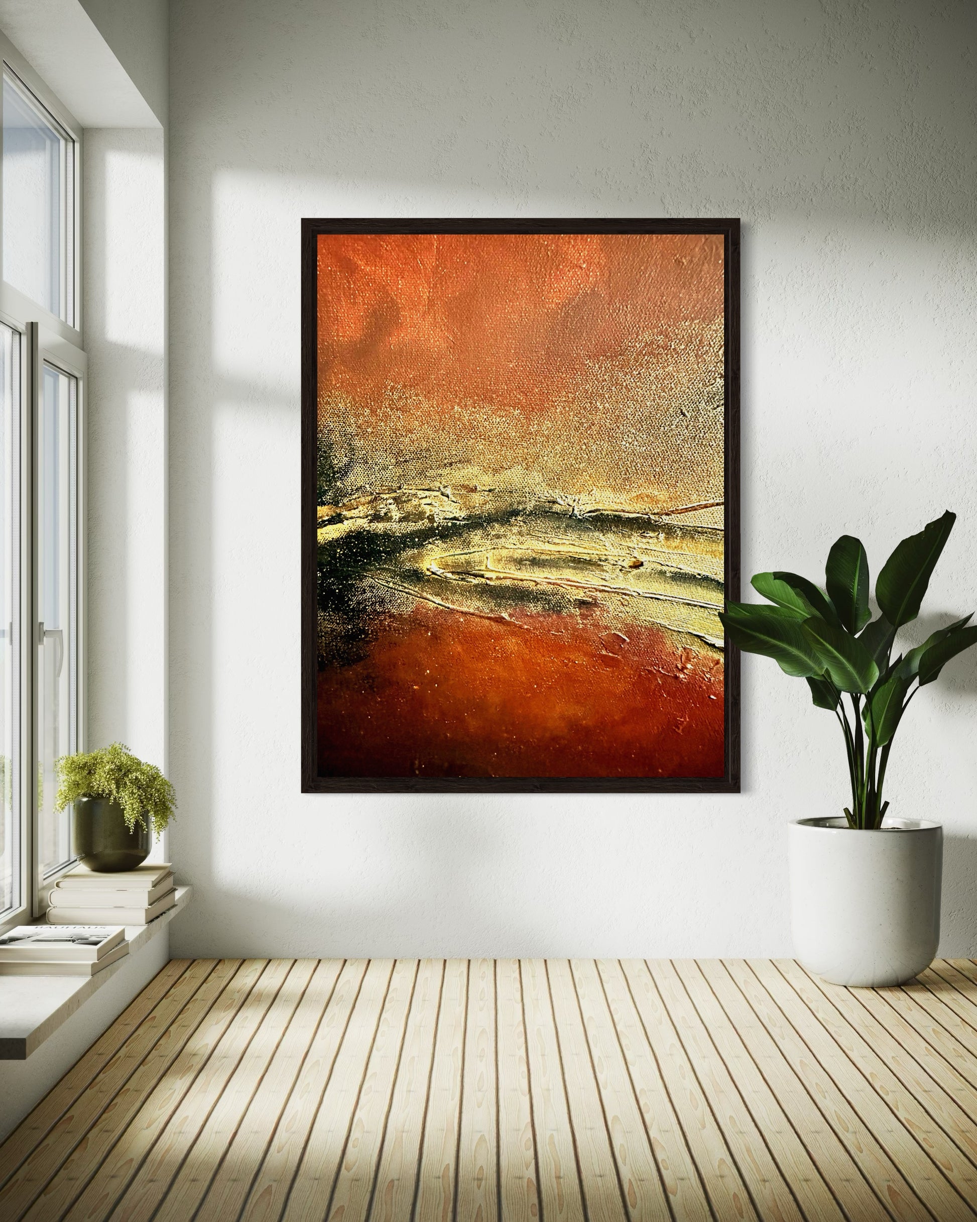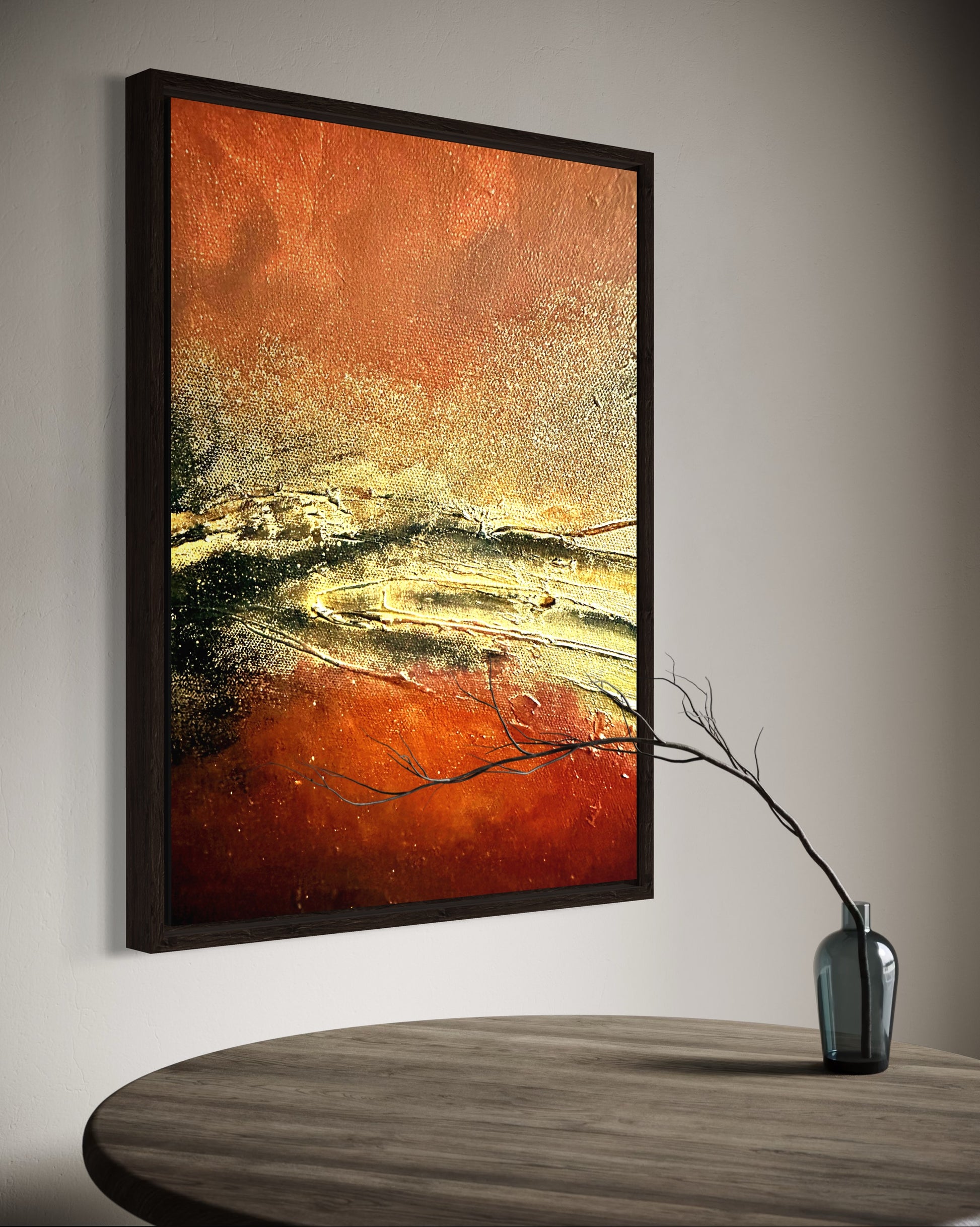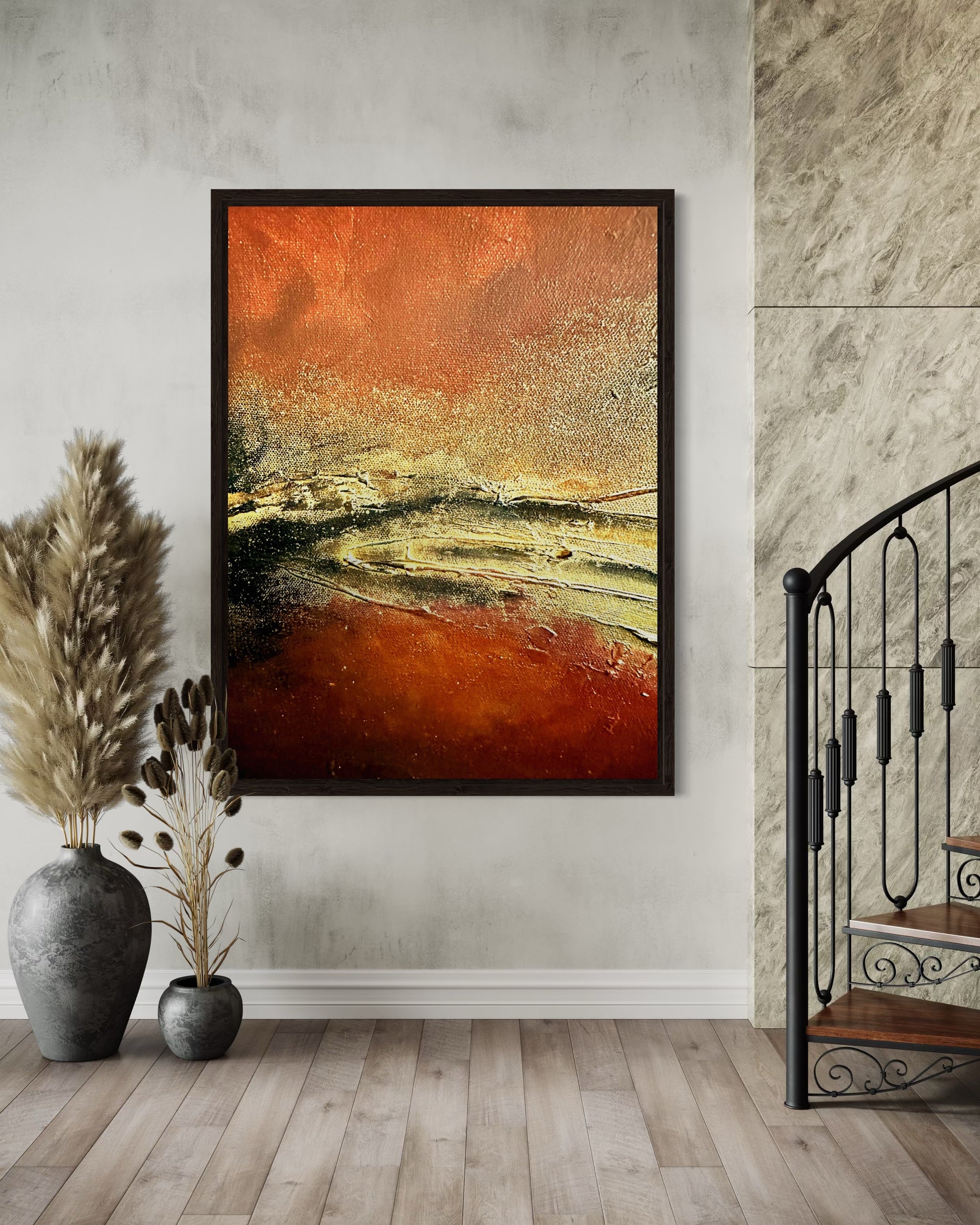 Rust and gold, creating a unique abstract that is both contrast and balanced at the same time.